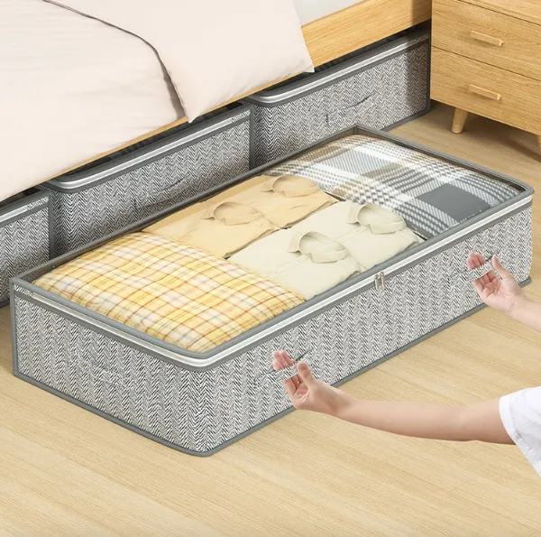 اكتشفوا الحلا الأنيق والعملي لتنظيم منازلكم: 📦 صندوق تخزين للبطانيات قابل للطي، ووحدة تخزين لملابس الخزانة. هذا الصندوق المبتكر يأتي بتصميم قابل للطي لتوفير راحة فائقة وتنظيم ممتاز.